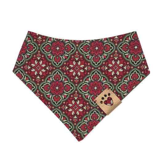 Christmas Filigree/Green with Gold Polka Dots Reversible Dog Bandana