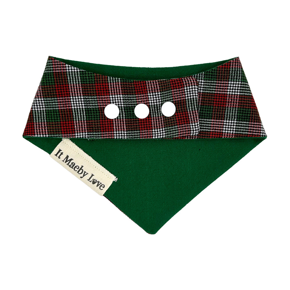 Peppermint Stick Plaid/Holly Green Reversible Dog Bandana